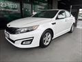 2015 Kia Optima LX powered by a 2.4L I4 paired with a 6-speed automatic transmission. Factory features include cloth seating, air conditioning, power windows and door locks, remote keyless entry, power mirrors, tilt-and-telescoping steering wheel with audio and cruise controls, Bluetooth hands-free and audio streaming, AM/FM/6-speaker stereo with USB/AUX inputs, 60/40 split-folding rear seat, 16-inch wheels, ABS with traction and electronic stability control, and multiple airbags with tire pressure monitoring. Exterior is white with a gray cloth interior; the vehicle is in excellent overall condition.