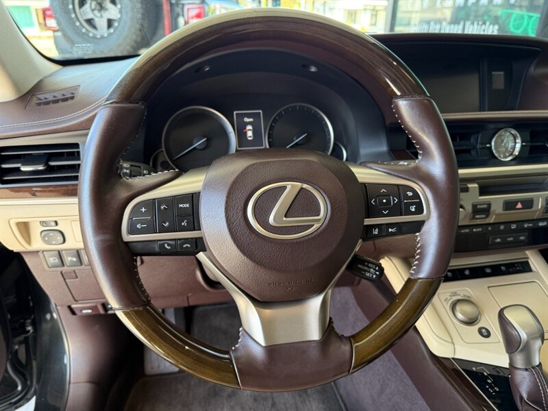 Introducing the 2016 Lexus ES 350, a refined sedan that combines luxury and performance. Powered by a robust 3.5L V6 engine, it delivers a smooth and responsive driving experience. The exterior is elegantly finished in Gray, complementing the sophisticated Tan leather interior that exudes comfort and style. This vehicle comes equipped with an array of factory features, including a premium audio system, Bluetooth connectivity, a navigation system, and a rearview camera for added convenience. Additional highlights include dual-zone climate control, heated and ventilated front seats, and a power-adjustable driver’s seat. This ES 350 is in excellent overall condition, backed by a CARFAX report showing only one single previous owner, ensuring peace of mind for the next driver.