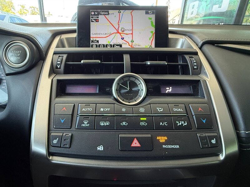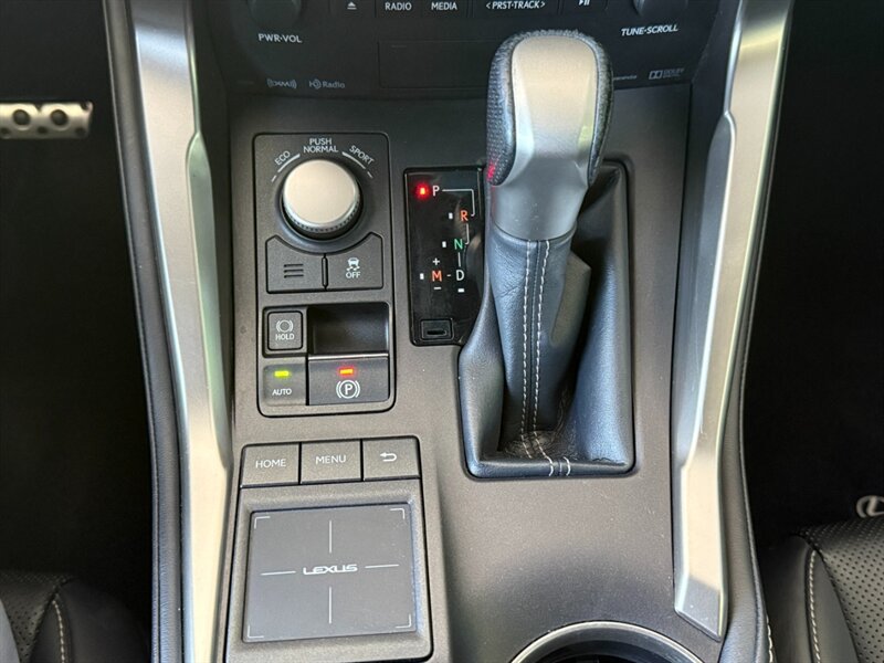 2016 Lexus NX 200t F SPORT in Silver with a Black interior, powered by a 2.0L turbocharged I4. The F SPORT adds sport-tuned suspension, distinctive exterior trim and alloy wheels, a leather-wrapped sport steering wheel with paddle shifters and sport-style seating. Factory equipment includes dual-zone automatic climate control, power-adjustable front seats, power moonroof, keyless entry with push-button start, rearview camera, Bluetooth and USB/AUX connectivity with Lexus Remote Touch interface, plus standard safety systems (ABS, traction and stability control, multiple airbags). Excellent overall condition, below 95,000 miles (averaging under 9,000 miles/year), clean CARFAX and one owner.