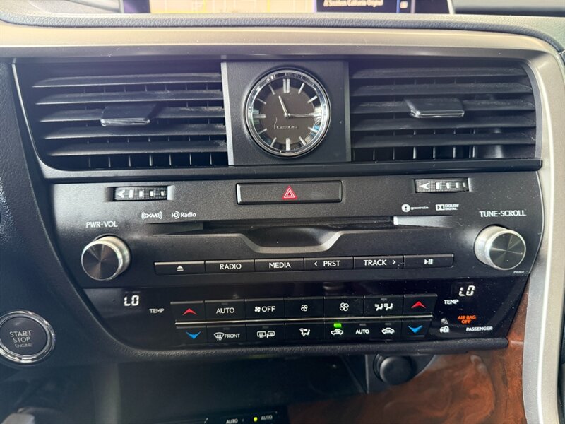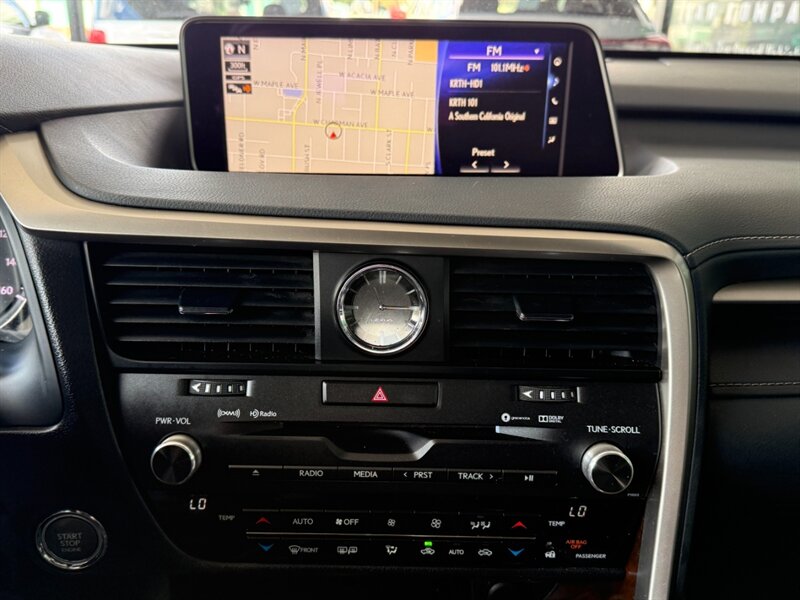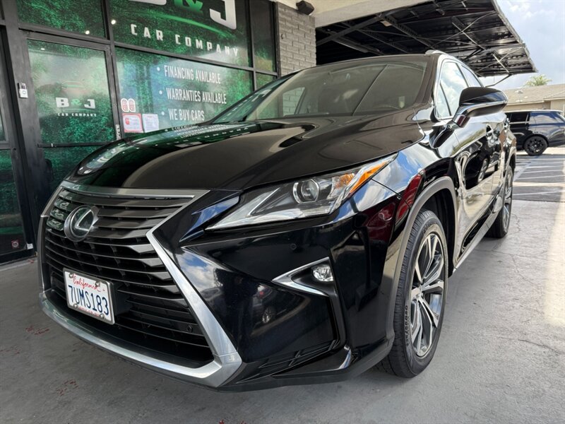 2016 Lexus RX 350 in black exterior with black interior, powered by a 3.5L V6; excellent overall condition, one-owner vehicle with a clean CARFAX. Factory equipment includes power windows and door locks, remote keyless entry with push-button start, dual-zone automatic climate control, power-adjustable front seats, a center infotainment display with Bluetooth hands-free audio/phone connectivity and rearview camera, power liftgate, alloy wheels, LED daytime running lights and projector-style headlights. Standard safety and convenience features include ABS, stability and traction control, multiple airbags and a tire pressure monitoring system.