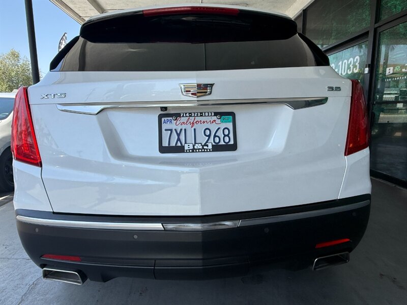 2017 Cadillac XT5 Luxury in white with a black leather interior, powered by the factory 3.6L V6 paired with an 8-speed automatic transmission. Factory equipment includes leather seating surfaces with heated, power-adjustable front seats and driver memory, dual-zone automatic climate control, keyless entry with push-button start and remote start, a hands-free power liftgate, rearview camera, Bluetooth hands-free audio and phone, Cadillac CUE touchscreen infotainment with USB/AUX inputs and steering-wheel controls, alloy wheels, LED daytime running lamps, OnStar connectivity, and standard safety systems such as ABS, traction and stability control, and multiple airbags. Vehicle is in excellent overall condition.