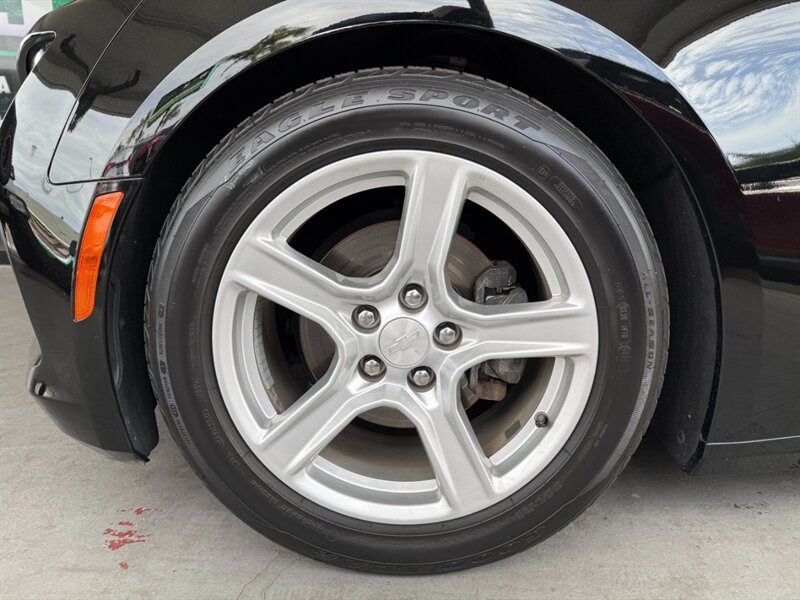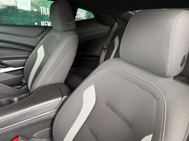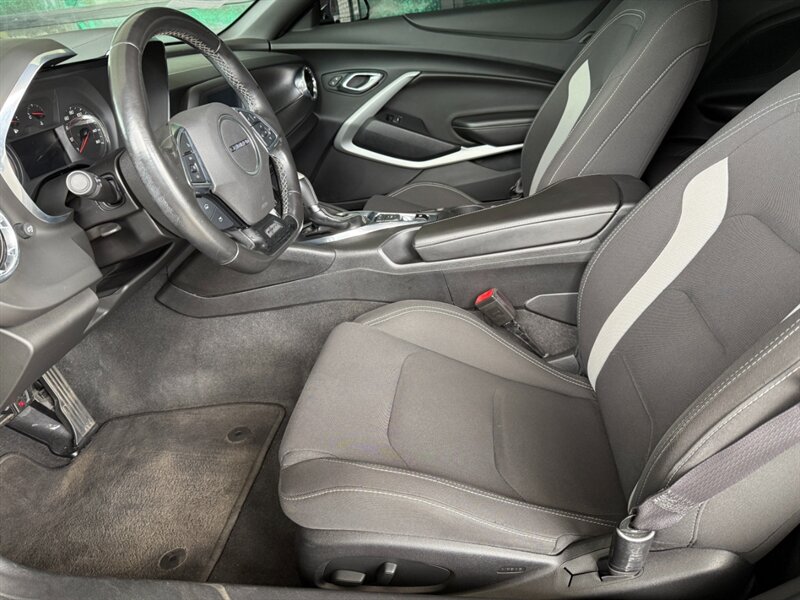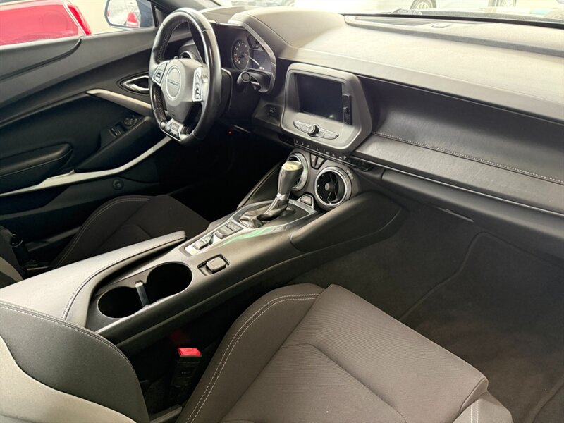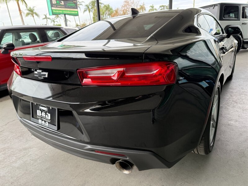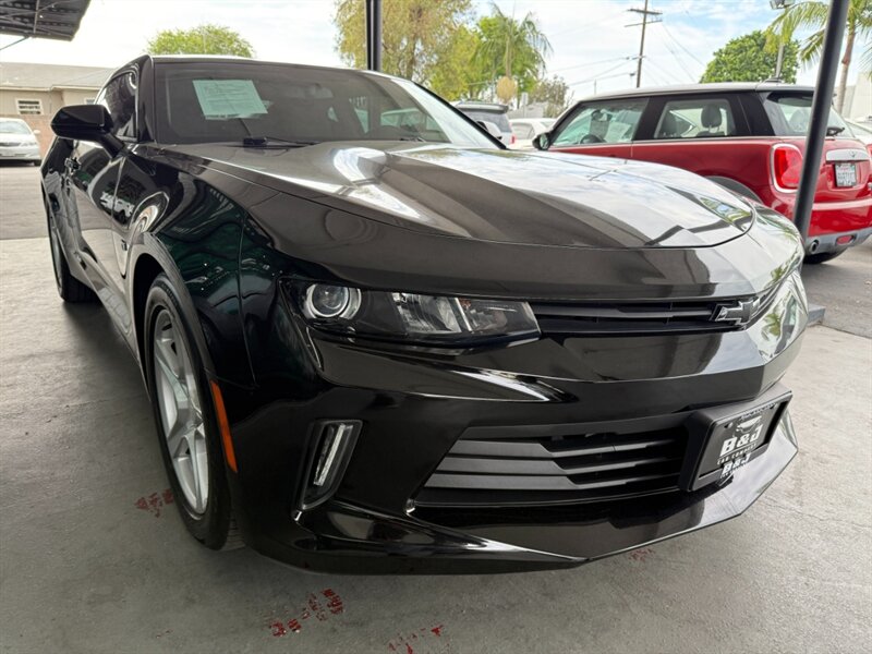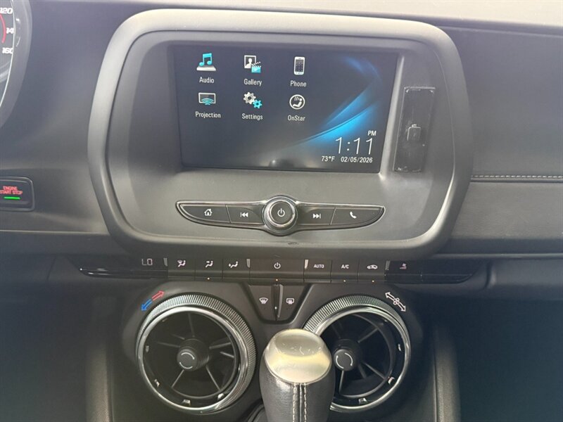 2017 Chevrolet Camaro LT powered by the 2.0L turbocharged I4. Factory equipment includes rear-wheel drive with a six-speed manual (or available eight-speed automatic), 18-inch alloy wheels, Chevrolet MyLink infotainment with Bluetooth and USB inputs, steering-wheel audio controls, power windows and locks, air conditioning and cruise control. Standard safety and convenience features include ABS, traction and stability control, and multiple airbags. Exterior is Black with a Black interior, under 53,000 miles (averaging less than 6,000 miles per year) and in excellent overall condition.