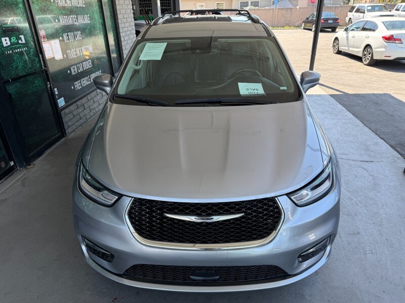 2021 Chrysler Pacifica Touring L in Silver with a Black interior, in excellent overall condition. Factory-equipped with a 3.6L V6 mated to a nine-speed automatic transmission and seating for up to seven with Chrysler’s Stow ’n Go second- and third-row seating. Comfort and convenience features include leather-trimmed heated front seats, power-adjustable driver’s seat, power sliding doors and power liftgate, remote start, keyless entry/push-button start, tri-zone automatic climate control and multiple USB ports. Infotainment and safety come standard with Uconnect (8.4-inch touchscreen) with Apple CarPlay/Android Auto and Bluetooth, rearview camera, rear parking sensors (ParkSense), blind-spot monitoring with rear cross-path detection, traction and stability control, and a full complement of airbags.