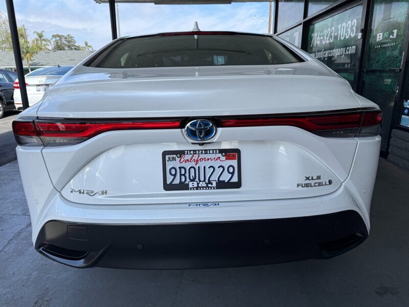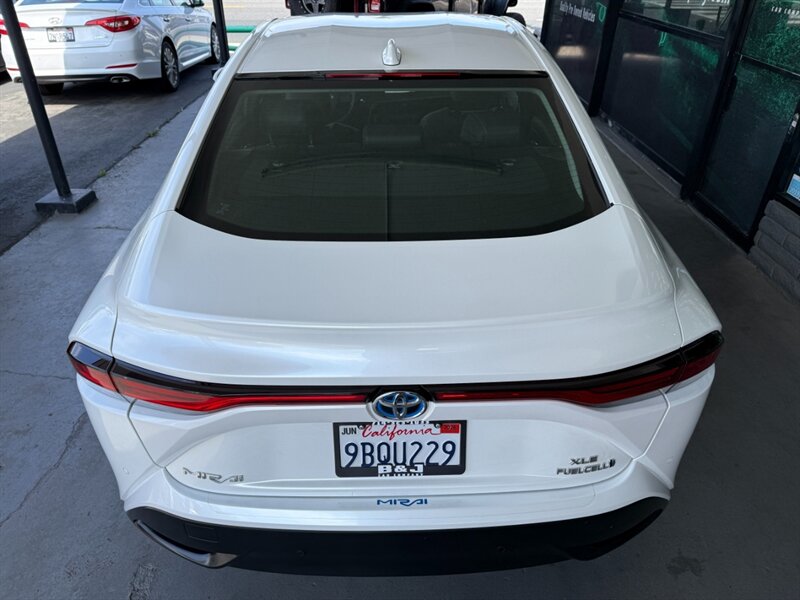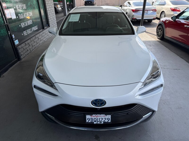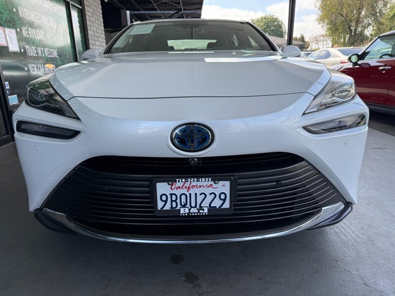 2022 Toyota Mirai XLE in White with a Black interior, powered by Toyota’s hydrogen fuel-cell electric powertrain (not a gasoline engine). Factory equipment includes Toyota Safety Sense advanced driver-assist tech (pre-collision with pedestrian detection, lane departure/steering assist, lane tracing and adaptive cruise control with automatic high beams), a touchscreen infotainment system with smartphone integration (Apple CarPlay/Android Auto), Bluetooth and USB connectivity, dual-zone automatic climate control, keyless entry with push-button start, heated front seats with leather-trimmed upholstery and power adjustments, LED lighting and alloy wheels. This vehicle has under 31,000 miles (averaging less than 7,000 miles per year), is in excellent overall condition, has a clean CARFAX and a single prior owner.